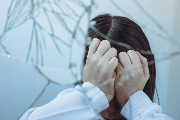 Desperately alone, she cowered, trembling in despair.